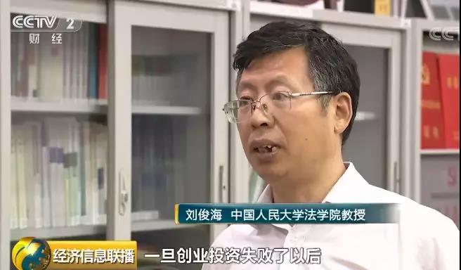 中國人民大學法學院教授 劉俊海:一旦創(chuàng)業(yè)投資失敗了以后,個人的信用也可以慢慢修復,個人進入破產(chǎn)清算程序以后,所有的債權人都來申報債權,同一類別的債權人,可以按照他們各自的債權比例打折公平受償。