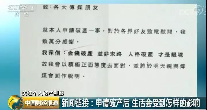 2002年10月,法院裁定鐘鎮(zhèn)濤破產(chǎn)。按照當時香港《破產(chǎn)條例》有關規(guī)定,破產(chǎn)期間,鐘鎮(zhèn)濤賺來的收入都要上交香港破產(chǎn)管理署,破產(chǎn)管理署按照其生活所需給予生活輔助后,其余收入全部用于還債。