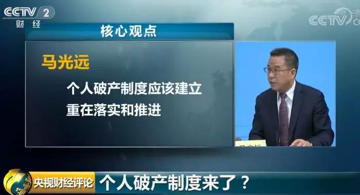 央視財經(jīng)評論員 馬光遠:個人破產(chǎn)制度的出發(fā)點是更好保護債權,維護好社會關系,維護社會穩(wěn)定。