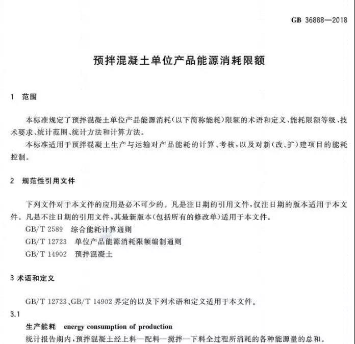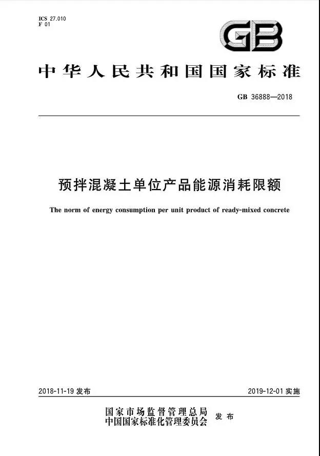 12月1日起實施預拌混凝土單位產品能源消耗限額 GB 36888-2018