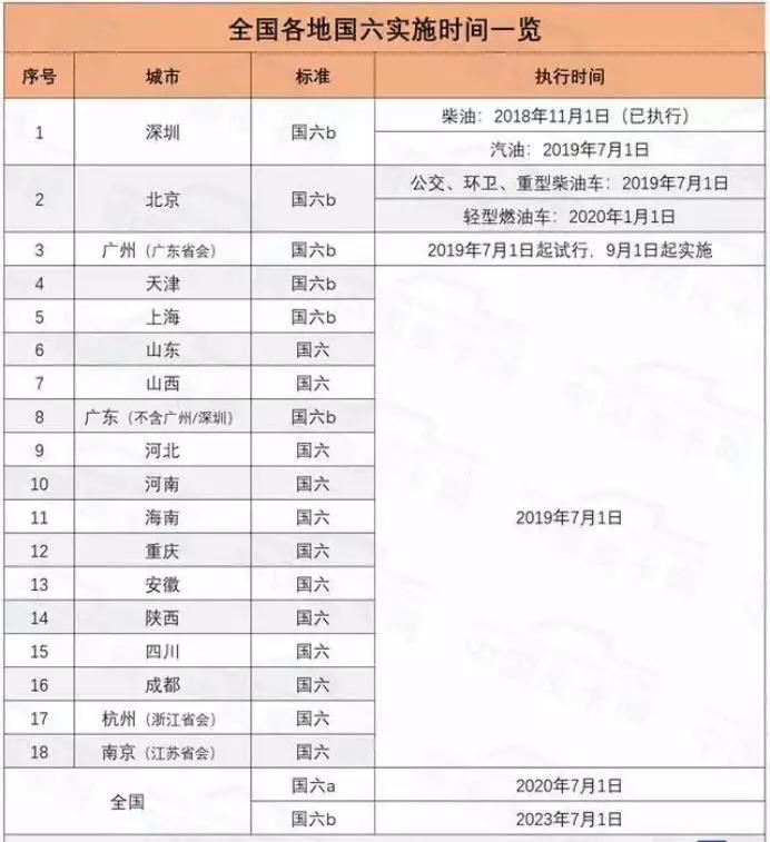 全國各地機動車執(zhí)行國六時間表發(fā)布