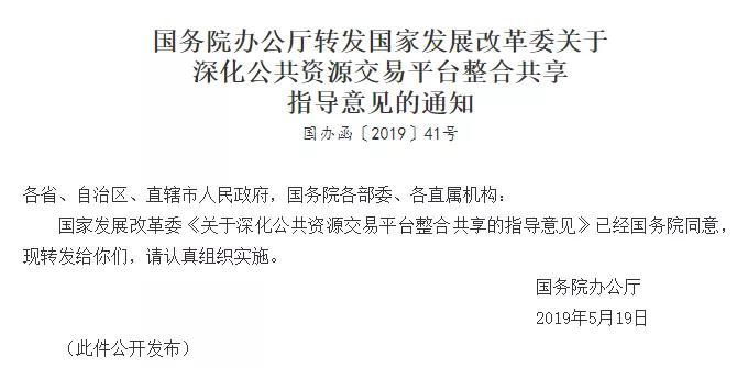 近日國務院辦公廳發(fā)布《國務院辦公廳轉發(fā)國家發(fā)展改革委關于 深化公共資源交易平臺整合共享指導意見的通知》(國辦函〔2019〕41號),通知明確提出:精簡管理事項和環(huán)節(jié)。系統(tǒng)梳理公共資源交易流程,取消沒有法律法規(guī)依據(jù)的投標報名、招標文件審查、原件核對等事項以及能夠采用告知承諾制和事中事后監(jiān)管解決的前置審批或審核環(huán)節(jié)。