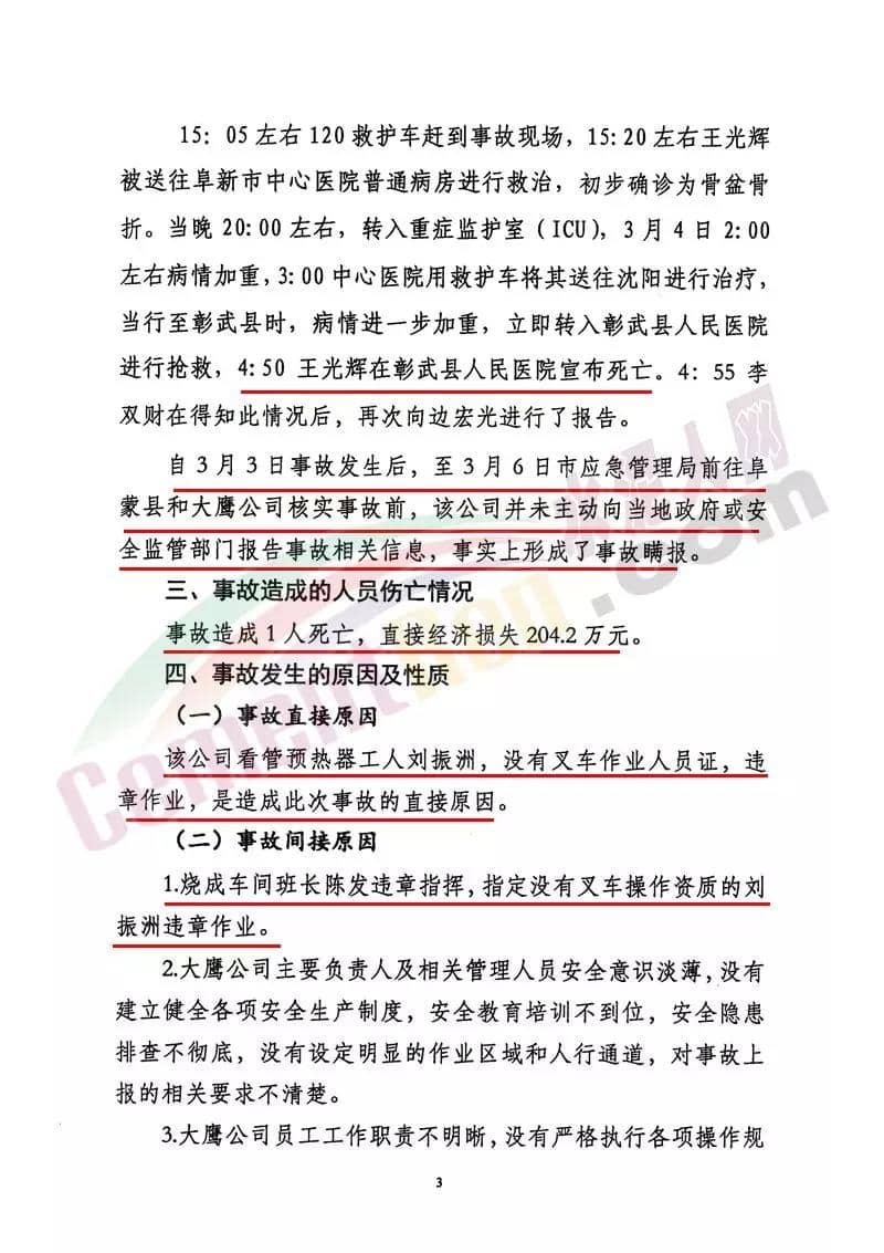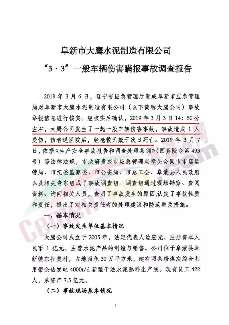 今年3月6日,遼寧省應(yīng)急管理廳責(zé)成阜新市應(yīng)急管理局對(duì)阜新市大鷹水泥制造有限公司事故舉報(bào)信息進(jìn)行核實(shí)。經(jīng)核實(shí)后確認(rèn),3月3日14:50分左右,鷹水泥發(fā)生了一起一般車輛傷害事故,事故造成一人死亡。自3月3日事故發(fā)生后至3月6日市應(yīng)急管理局前往阜蒙縣和大鷹公司核實(shí)事故前,該公司并未主動(dòng)向當(dāng)?shù)卣虬踩O(jiān)管部門報(bào)告事故相關(guān)信息,事實(shí)上形成了事故瞞報(bào)。事故造成1人死亡,直接經(jīng)濟(jì)損失204.2萬(wàn)元。事故直接原因?yàn)?,大鷹水泥公司看管預(yù)熱器工人劉某沒(méi)有叉車作業(yè)人員證,違章作業(yè)。經(jīng)事故調(diào)查組認(rèn)定,本起事故為一般生產(chǎn)安全瞞報(bào)事故。