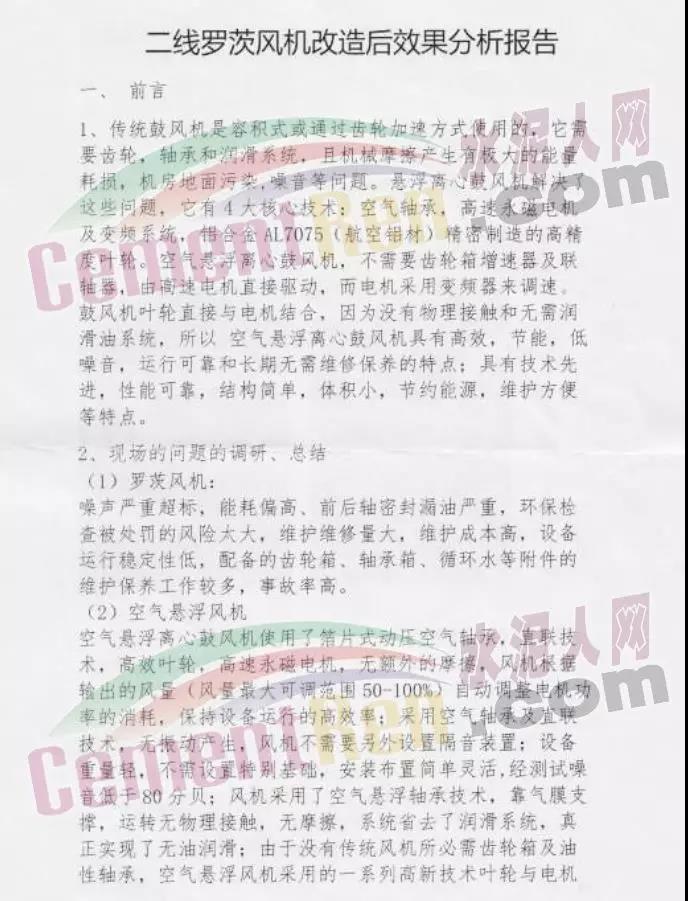 二線羅茨風(fēng)機(jī)改造后的效果分析報(bào)告如下: