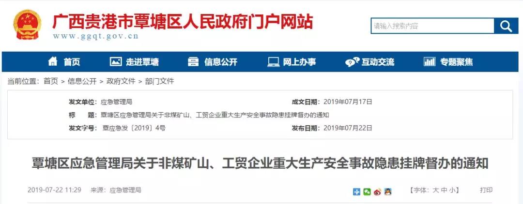 《通知》稱:根據(jù)《貴港市安全生產(chǎn)委員會辦公室關(guān)于印發(fā)2019年全市重點(diǎn)行業(yè)領(lǐng)域安全生產(chǎn)專項(xiàng)整治方案的通知》(貴安委辦〔2019〕10號)和廣西壯族自治區(qū)應(yīng)急管理廳《關(guān)于進(jìn)一步強(qiáng)化非煤礦山安全監(jiān)管工作的通知》(桂應(yīng)急發(fā) 〔2019〕16號)文件要求,廣西貴港市覃塘區(qū)應(yīng)急管理局聘請廣西工業(yè)建筑設(shè)計(jì)研究院有限公司對覃塘區(qū)轄區(qū)華潤水泥(貴港)有限公司天堂嶺水泥配料用砂巖礦等8家企業(yè)進(jìn)行安全生產(chǎn)隱患排查,發(fā)現(xiàn)8家企業(yè)共存在53項(xiàng)重大生產(chǎn)安全事故隱患,并下達(dá)了整改通知書,責(zé)令限期整改。