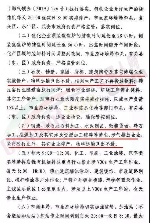 同期,邯鄲市大氣污染防治工作領(lǐng)導(dǎo)小組辦公室也發(fā)布了緊急通知,邯鄲市于2019年7月19日20.00-7月26日20:00,對(duì)主城區(qū)及周邊執(zhí)行大氣污染防治強(qiáng)化應(yīng)急管控措施。管控地區(qū)包括邯山區(qū)、復(fù)興區(qū)、邯都經(jīng)濟(jì)技術(shù)開發(fā)區(qū)、冀南新區(qū)、永年區(qū)、武安市、磁縣、成安縣、臨潭縣。