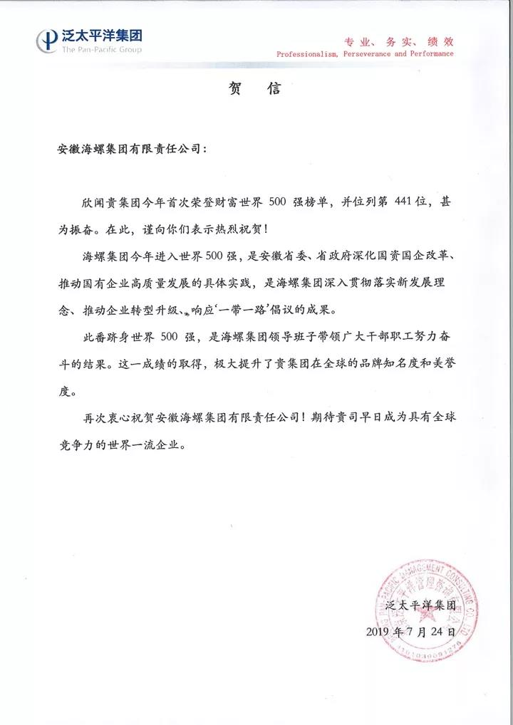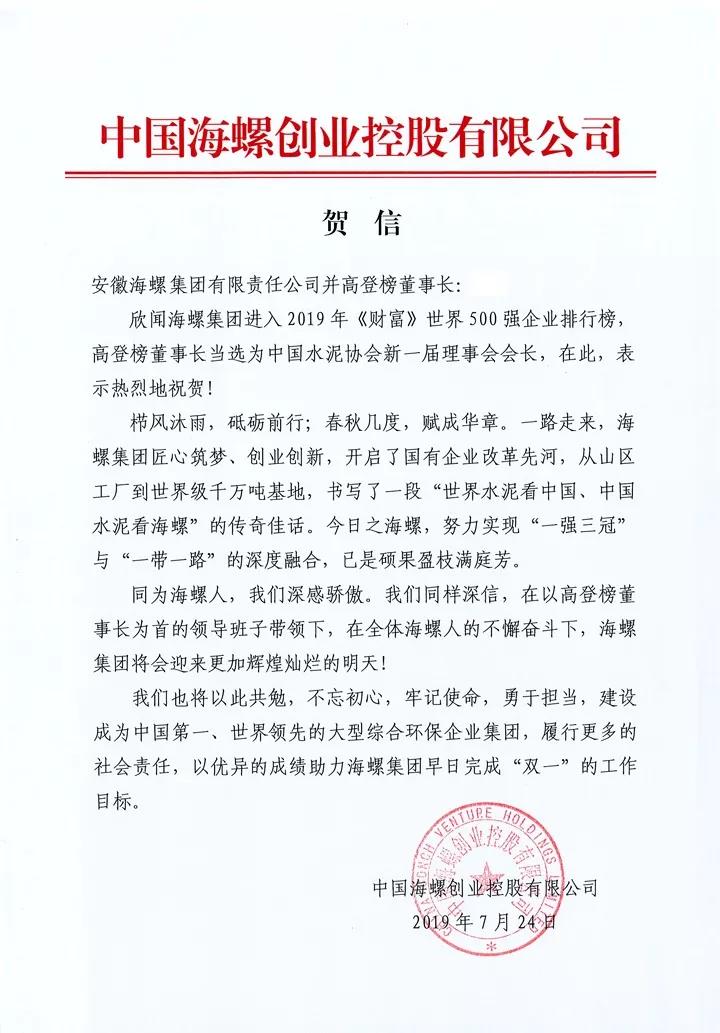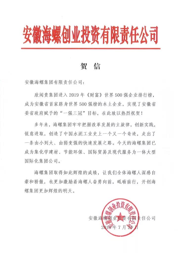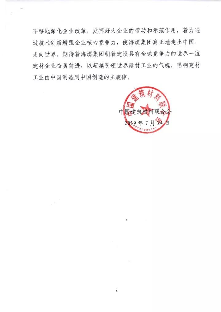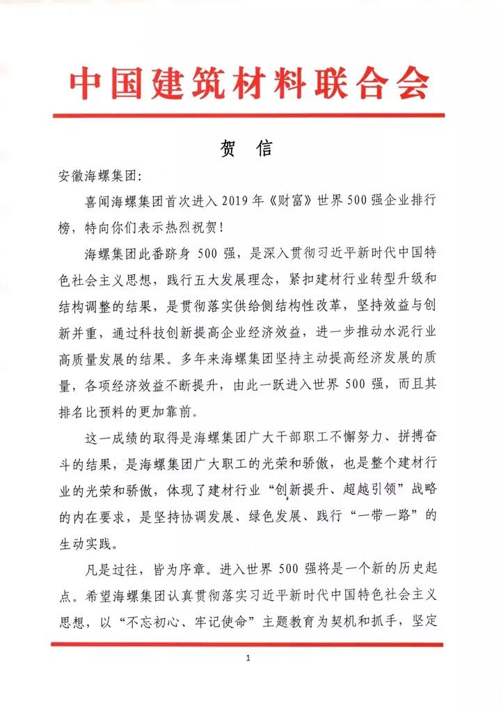 近日,池州市人民政府,中國(guó)建筑材料聯(lián)合會(huì)、中國(guó)水泥協(xié)會(huì),泛太平洋集團(tuán)、三一集團(tuán)、日本川崎重工等企業(yè)向海螺集團(tuán)發(fā)來賀信。