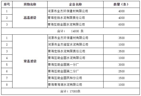 1、招標(biāo)項(xiàng)目:下屬各子公司生產(chǎn)所需高溫濾袋和普通濾袋進(jìn)行采購(gòu)招標(biāo)。