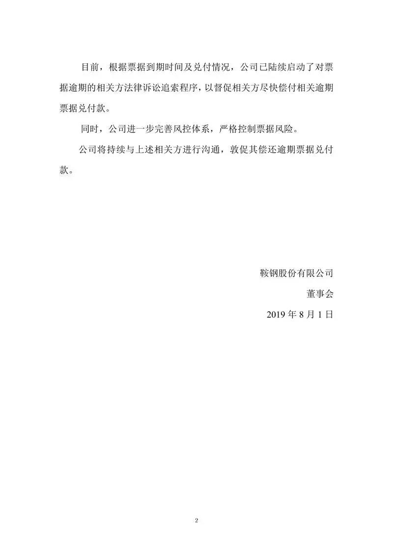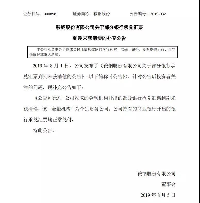 據(jù)水泥人網(wǎng)了解,鞍鋼股份日前發(fā)布的一則“部分銀行承兌匯票到期未獲清償”的公告迅速引發(fā)市場關注。截至7月31日,尚有未來可能被后手貼現(xiàn)方追索銀行承兌匯票4.94億元,兩者銀行承兌票據(jù)合計8.32億元。