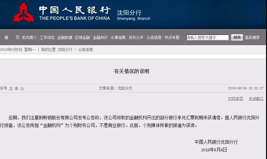 8月4日,央行沈陽分行緊急辟謠,經(jīng)排查,該公告所指“金融機構”為個別財務公司,不是商業(yè)銀行。