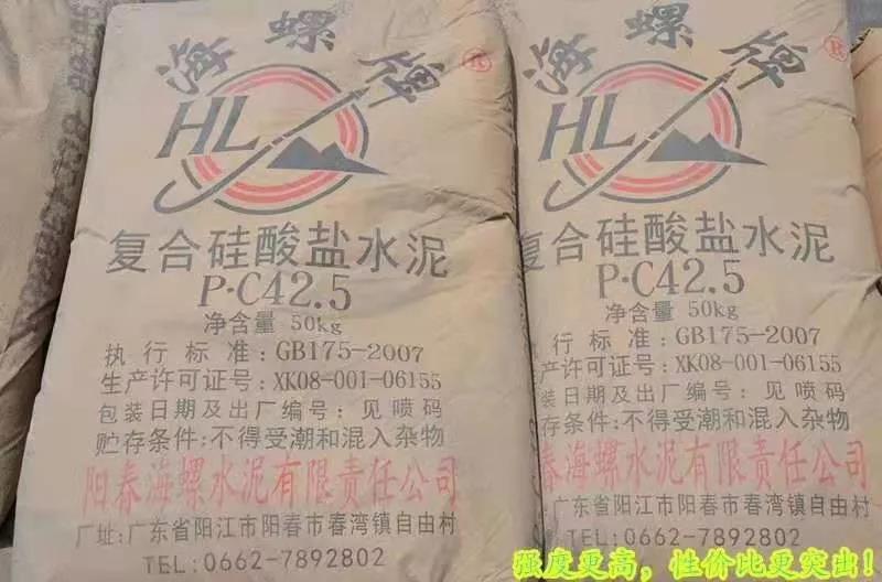 同屬華南區(qū)域的陽春的海螺水泥(陽春)分公司的也推出了新品PC42.5復(fù)合硅酸鹽水泥。
