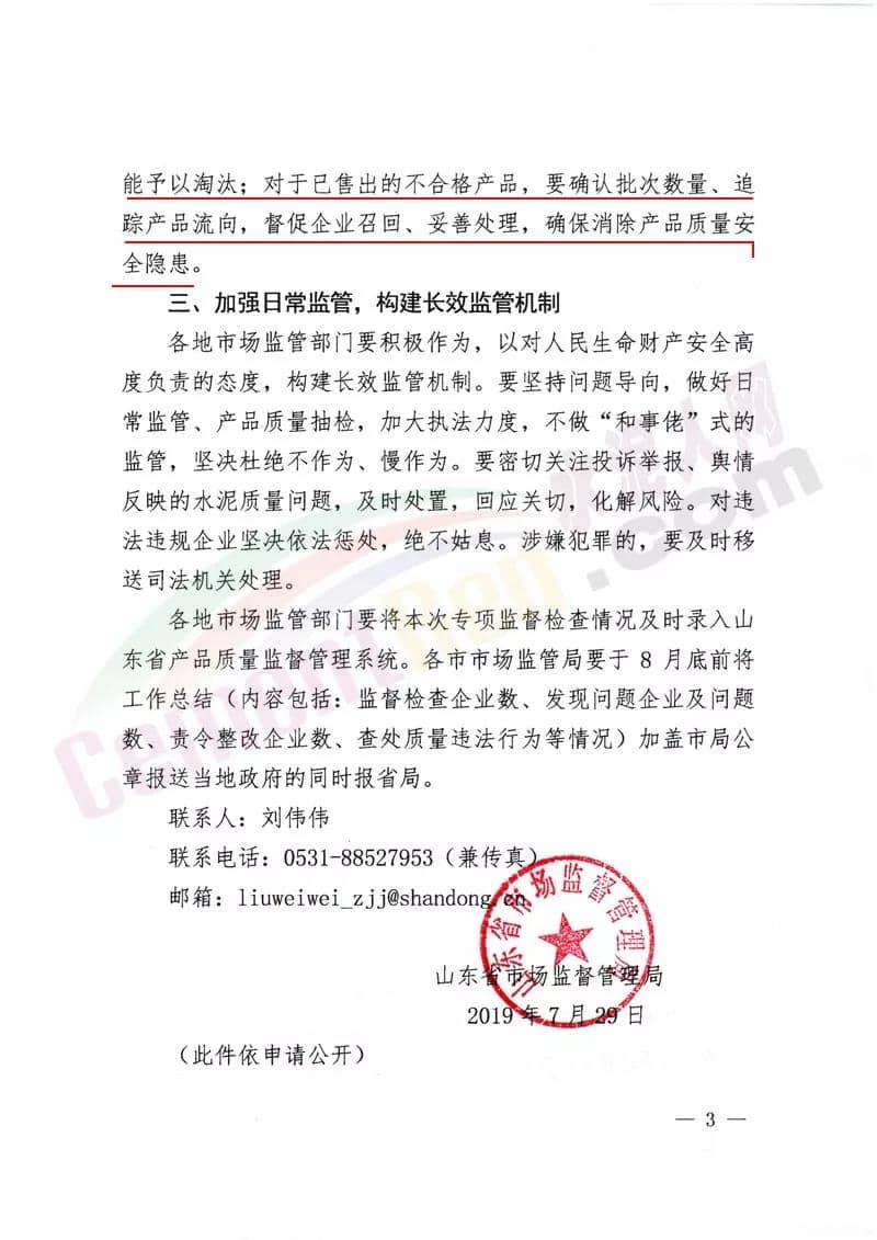 應上述文件要求7月30日,濟寧市市場監(jiān)管局向各縣市區(qū)局轉發(fā)了上述通知。并于近日開展了水泥生產(chǎn)經(jīng)營企業(yè)專項監(jiān)督檢查,主要檢查是否存在無證(超許可范圍)生產(chǎn)、制售假冒偽劣、不按規(guī)定標識等質量違法行為等。