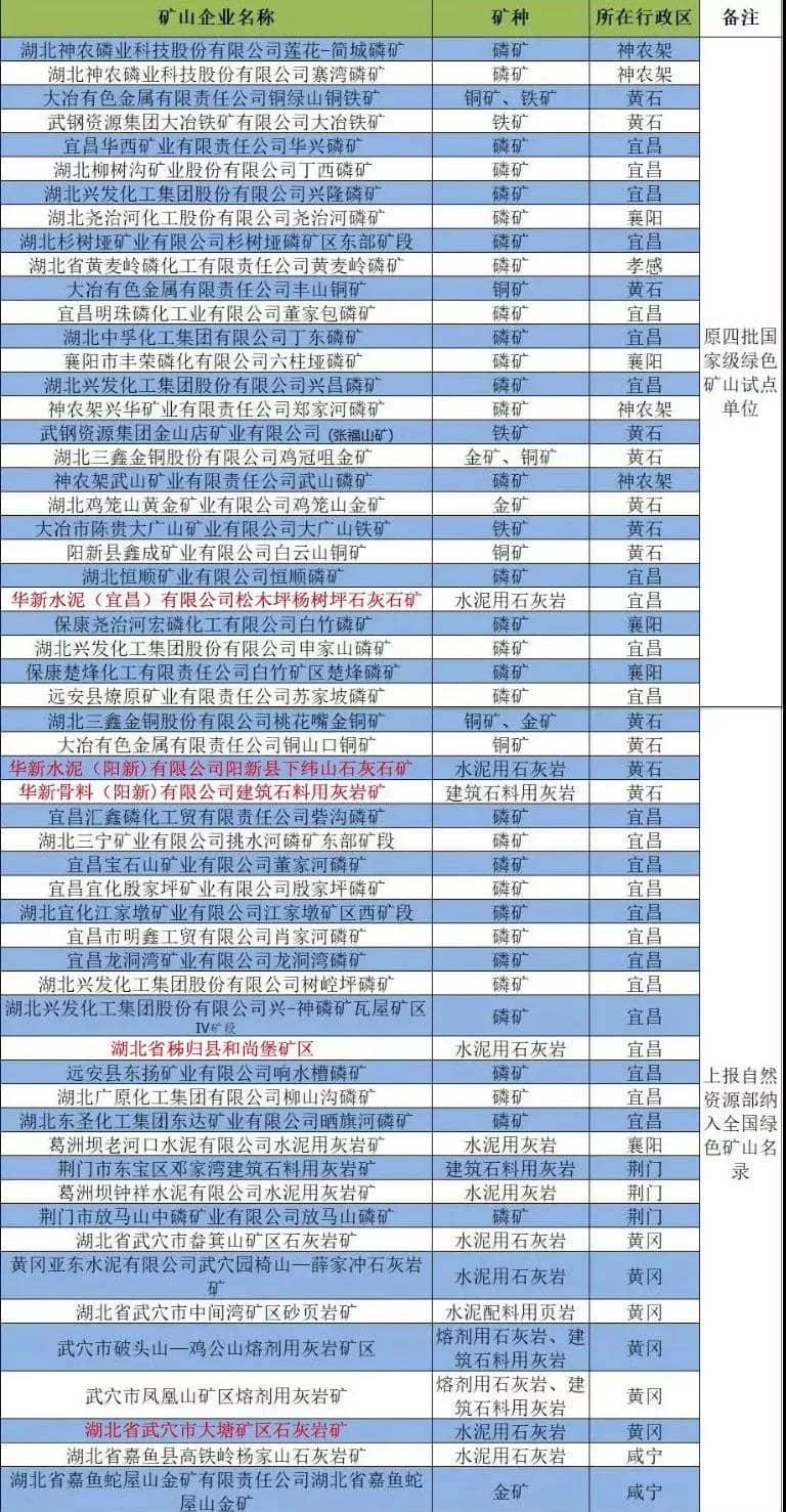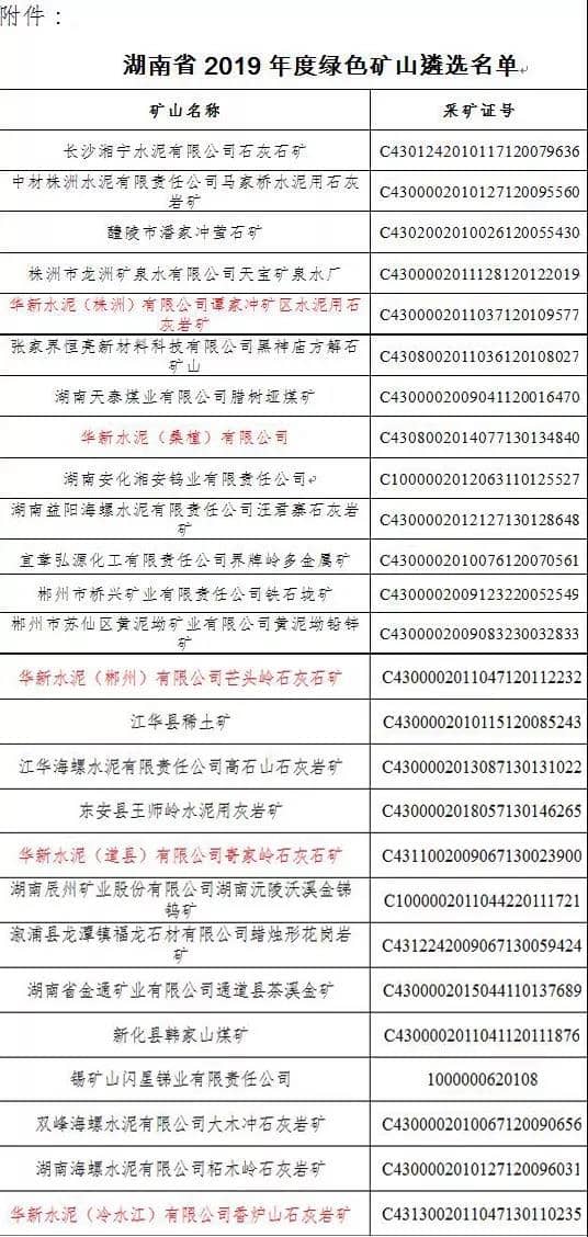 近日,湖北、湖南、山東、廣東、廣西、四川六省(自治區(qū))陸續(xù)公布了本省(自治區(qū))2019年度綠色礦山遴選入庫推薦名單。其中,華新有10家礦山入選湖北省和湖南省的綠色礦山推薦名單,整理如下: