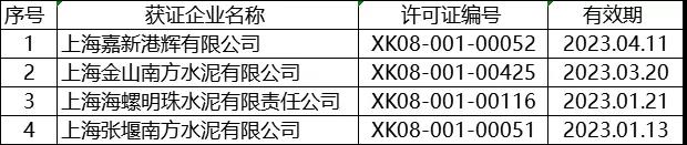 上海省部分水泥企業(yè)名單