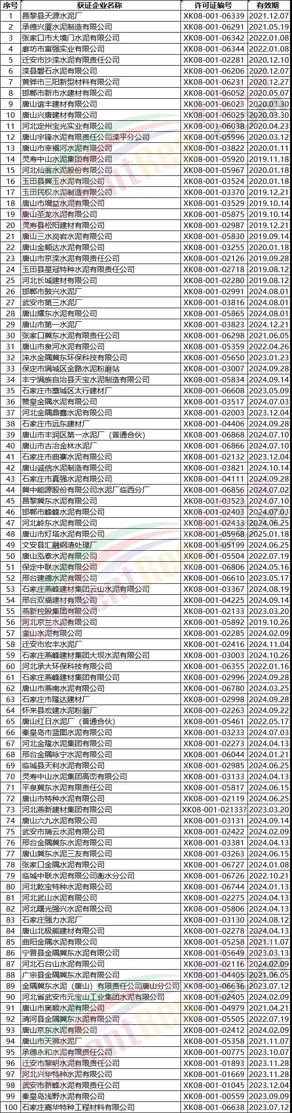 河北省水泥企業(yè)名單