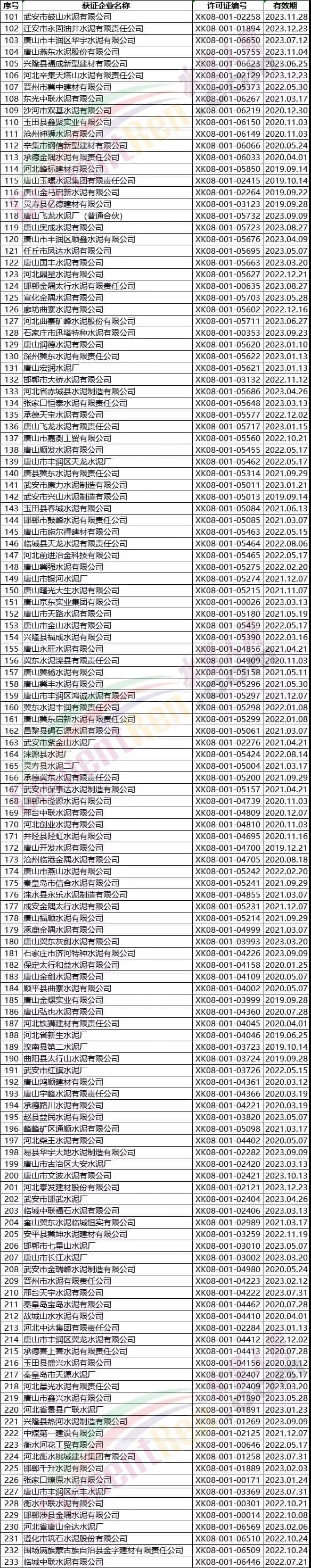 附:臺灣、福建、浙江、上海、江蘇、山東、河北、天津、遼寧水泥企業(yè)名單