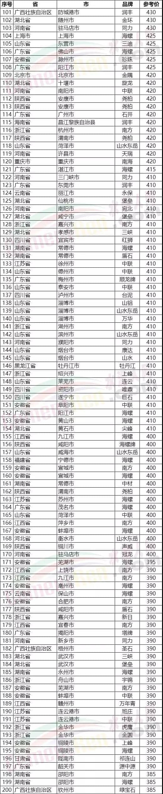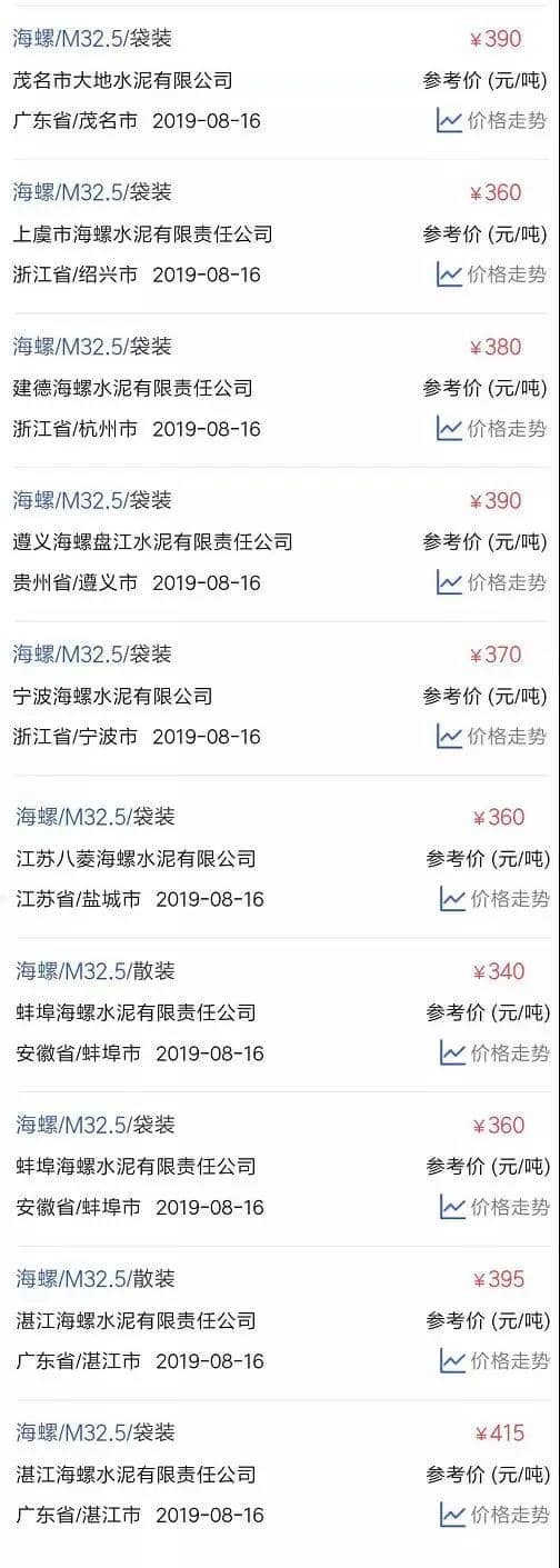 水泥人網(wǎng)信息中心PC32.5R水泥參考價(時間:2019年8月16日)