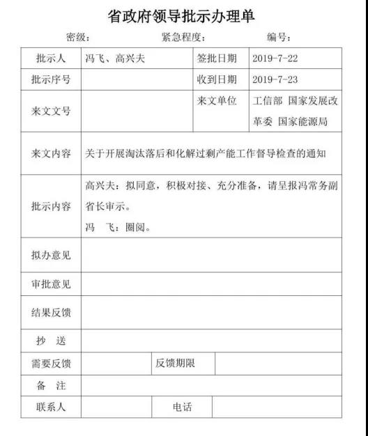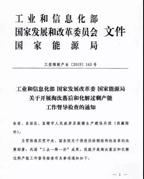 根據(jù)馮飛常務(wù)副省長、高興夫副省長在《工業(yè)和信息化部 國 家發(fā)展改革委 國家能源局關(guān)于開展淘汰落后和化解過剩產(chǎn)能工 作督導(dǎo)檢查的通知》(工信部聯(lián)產(chǎn)業(yè)〔2019〕143 號)(以下簡稱 《通知》)上的批示要求,為做好國家督導(dǎo)檢查準(zhǔn)備工作,現(xiàn)就 有關(guān)事項通知如下: