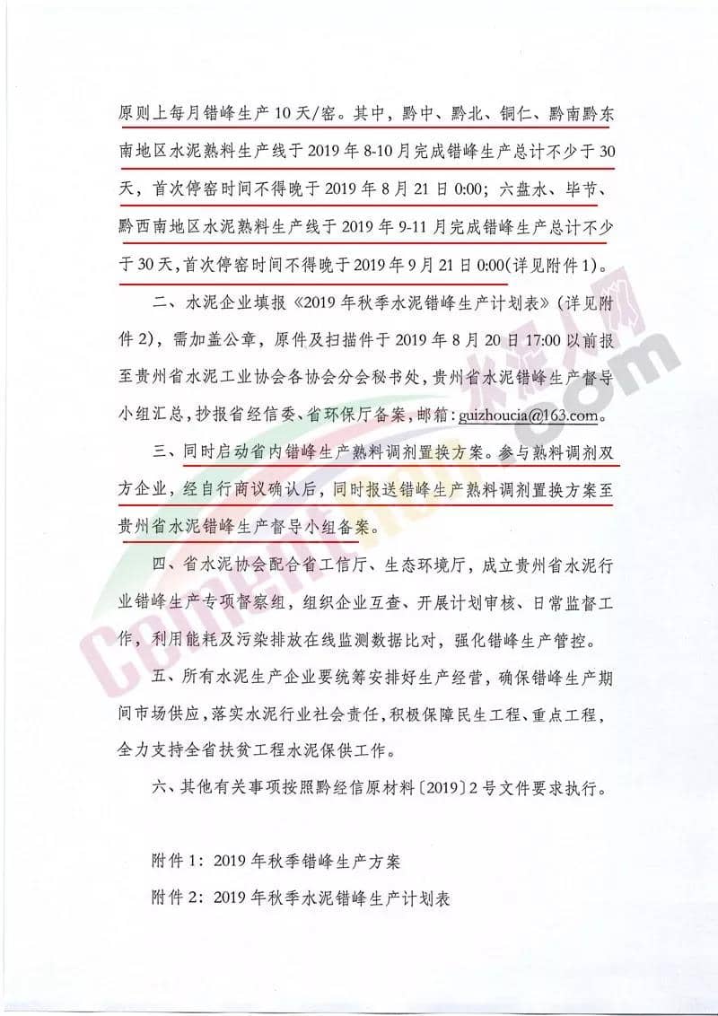 其中,黔中、黔北、銅仁、黔南黔東南地區(qū)水泥熟料生產(chǎn)線(xiàn)于2019年8-10月完成錯(cuò)峰生產(chǎn)總計(jì)不少于30天,首次停窯時(shí)間不得晚于2019年8月21日0:00;六盤(pán)水、畢節(jié)、黔西南地區(qū)水泥熟料生產(chǎn)線(xiàn)于2019年9-11月完成錯(cuò)峰生產(chǎn)總計(jì)不少于30天,首次停窯時(shí)間不得晚于2019年9月21日0:00。