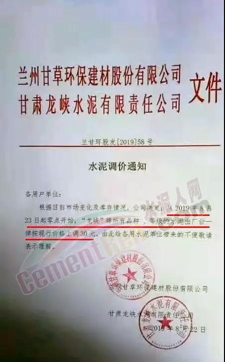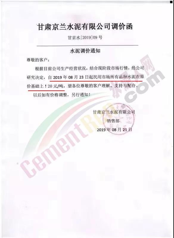 同期,甘肅蘭州及周邊區(qū)域企業(yè)自20日發(fā)布一波漲價通知后昨日又有多家企業(yè)陸續(xù)發(fā)出調(diào)價通知函稱上調(diào)水泥價格30元/噸。從各企業(yè)發(fā)布的通知函可見,白銀壽鹿山水泥、蘭州甘草環(huán)保建材、甘肅京蘭水泥、蘭州紅獅水泥等都是自今日起上調(diào)水泥價格。調(diào)價幅度均為20-30元/噸。