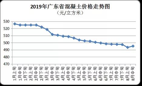 8月中旬全省混凝土價格相對平穩(wěn),粵北地區(qū)有所上漲,全省批發(fā)均價為每立方米495元,環(huán)比上升0.36%。其中,粵北均價為每立方米460元,環(huán)比上升1.81%;珠三角均價為每立方米563元,環(huán)比微降0.2%;粵東和粵西地區(qū)均價分別為每立方米436元和400元,環(huán)比均持平。