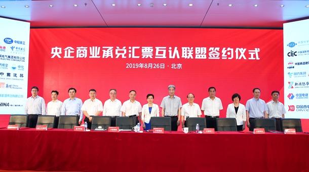 國務(wù)院國資委財務(wù)監(jiān)管局領(lǐng)導(dǎo)、中央企業(yè)有關(guān)領(lǐng)導(dǎo)出席簽約儀式。51家央企商業(yè)承兌匯票互認聯(lián)盟成員單位代表現(xiàn)場簽署了“企票通”合作公約,97家中央企業(yè)代表現(xiàn)場見證了簽約儀式。