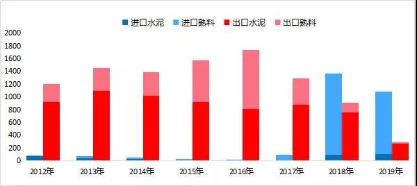 進(jìn)口方面:2012-2016年,國(guó)內(nèi)進(jìn)口熟料和水泥數(shù)量微乎其微,但從供給側(cè)改革以來(lái),水泥限產(chǎn)明顯,且價(jià)格持續(xù)上漲,國(guó)外熟料不斷進(jìn)入國(guó)內(nèi)水泥市場(chǎng),如越南的水泥和熟料開始大量進(jìn)入中國(guó)沿海地區(qū);2017年國(guó)內(nèi)熟料和水泥進(jìn)口數(shù)量猛增87.1萬(wàn)噸,2018年進(jìn)口量高達(dá)1362.55萬(wàn)噸,反高于出口總量459萬(wàn)噸;2019年上半年國(guó)內(nèi)進(jìn)口熟料和水泥量持續(xù)增加,進(jìn)口量累計(jì)1082.52萬(wàn)噸,同比增漲143.48%。進(jìn)口熟料不僅來(lái)自越南,包括印尼在內(nèi)的東南亞其他水泥產(chǎn)能過剩的國(guó)家也不斷進(jìn)入國(guó)內(nèi)沿海水泥市場(chǎng)。