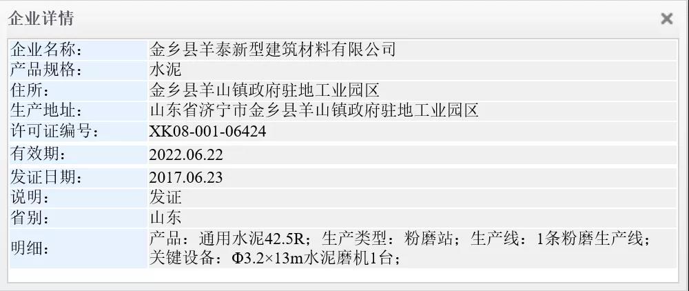 市場監(jiān)管總局生產許可證辦公室數據顯示,濟寧經濟開發(fā)區(qū)麟城水泥有限公司生產地址位于山東省濟寧經濟開發(fā)區(qū)馬集鎮(zhèn)闕里村西300米。企業(yè)擁有一條水泥粉磨生產線,其關鍵設備為Φ3.5×14m水泥磨機1臺。