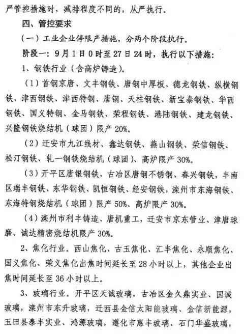 管控行業(yè)包括鋼鐵、焦化、水泥、玻璃、鑄造等工業(yè)企業(yè)。通知要求全市各個(gè)縣區(qū)要將涉及停限產(chǎn)企業(yè)納入停限產(chǎn)清單,要明確到具體企業(yè)、具體裝備、具體時(shí)間和限產(chǎn)產(chǎn)量。文件全文如下:
