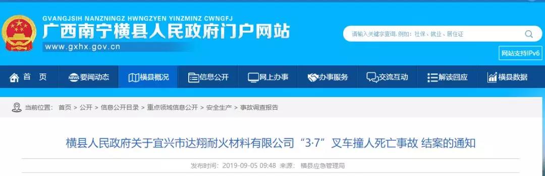 根據(jù)國(guó)務(wù)院《生產(chǎn)安全事故報(bào)告和調(diào)查處理?xiàng)l例》的規(guī)定和縣人民政府的授權(quán),縣應(yīng)急管理局牽頭成立了由縣公安局、人力資源和社會(huì)保障局、總工會(huì)等部門共同組成宜興市達(dá)翔耐火材料有限公司“3·7”叉車撞人死亡事故調(diào)查組,同時(shí)邀請(qǐng)縣監(jiān)察委派員參加事故調(diào)查。經(jīng)事故調(diào)查組調(diào)查取證,查明了事故發(fā)生的經(jīng)過和原因,分清了事故責(zé)任,并對(duì)事故相關(guān)單位及其相關(guān)責(zé)任人提出了處理建議和防范措施,形成了事故調(diào)查報(bào)告,并經(jīng)第十七屆橫縣人民政府第86次常務(wù)會(huì)議審議通過。現(xiàn)將事故結(jié)案的有關(guān)事項(xiàng)通知如下: