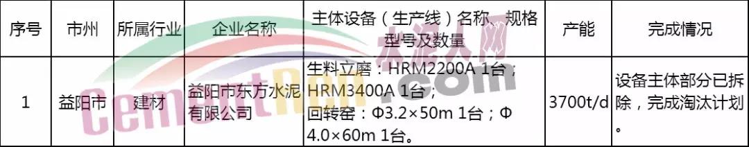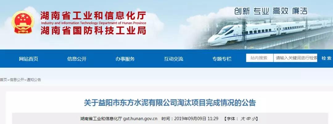 益陽市人民政府以《關(guān)于請求對益陽市東方水泥有限公司淘汰退出產(chǎn)能完成情況進行公告的函》(益政函〔2019〕102號)提出公告申請,現(xiàn)對益陽市東方水泥有限公司淘汰項目完成情況予以公告。