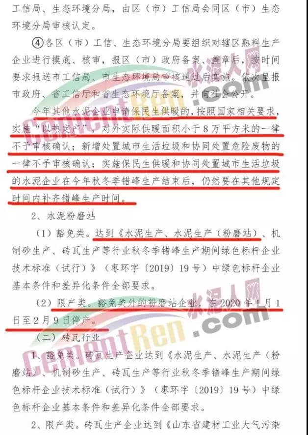 (3) 限制類?;砻忸惡拖蕻a(chǎn)類以外的水泥企業(yè),在2019年11月15日至2020年3月15日停產(chǎn)。