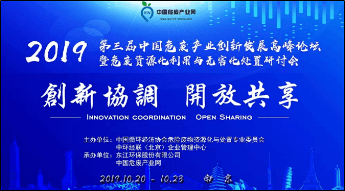為規(guī)范危險廢物處置工程建設(shè)和運行,提高危廢利用總體處置水平,控制環(huán)境風險,改善環(huán)境質(zhì)量,助力探索建立“無廢城市”建設(shè)綜合管理制度和技術(shù)體系,實現(xiàn)危險廢物處置減量化、資源化和無害化的目標,中國循環(huán)經(jīng)濟協(xié)會聯(lián)合中環(huán)經(jīng)聯(lián)(北京)企業(yè)管理中心于2019年10月20日至23日舉辦第三屆“中國危廢產(chǎn)業(yè)創(chuàng)新發(fā)展高峰論壇暨危廢資源化利用與無害化處置研討會”。歡迎各單位選派或組織相關(guān)人員加入。