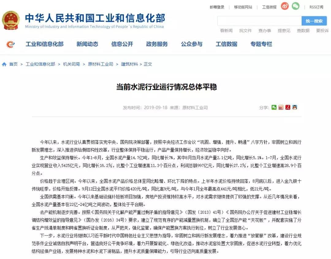 水泥人網(wǎng)消息:昨日(18日)國家工信部原材料工業(yè)司發(fā)布消息稱,當前水泥行業(yè)運行情況總體平穩(wěn)。