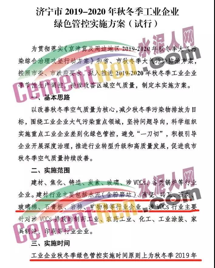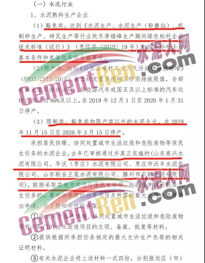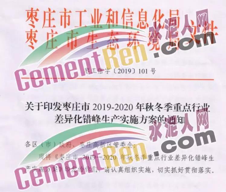在此之前,棗莊市也發(fā)布了《關于印發(fā)棗莊市2019-2020年秋冬季重點行業(yè)差異化錯知生產(chǎn)實施方案的通知》,全市水泥(含粉磨站)、磚瓦等行業(yè)錯峰生產(chǎn)時間為 2019年11月15日至2020年3月15日。