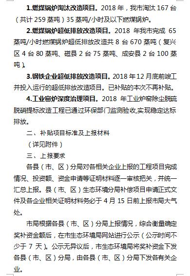 日前,邯鄲印發(fā)關(guān)于上報2018年中央大氣污染防治資金獎補(bǔ)項目的通知。涉及燃煤鍋爐淘汰、燃煤鍋爐超低排放改造、鋼鐵企業(yè)超低排放改造和工業(yè)爐窯深度治理等項目。