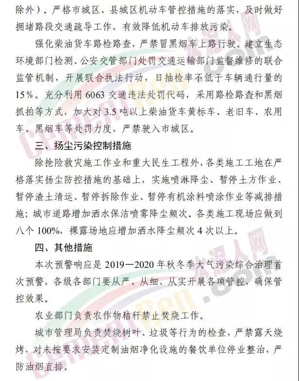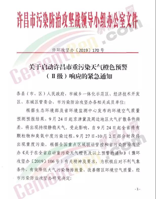 日前,繼河南省新鄉(xiāng)市,安陽市發(fā)布重污染天氣紅色預(yù)警后,開封市也發(fā)布了紅色預(yù)警通知。通知要求所轄區(qū)區(qū)域于2019年9月24日0時(shí)啟動(dòng)紅色預(yù)警(Ⅰ)級響應(yīng),預(yù)警解除時(shí)間另行通知 。通知要求水泥粉磨站、露天石材加工等行業(yè)實(shí)施停產(chǎn)措施。