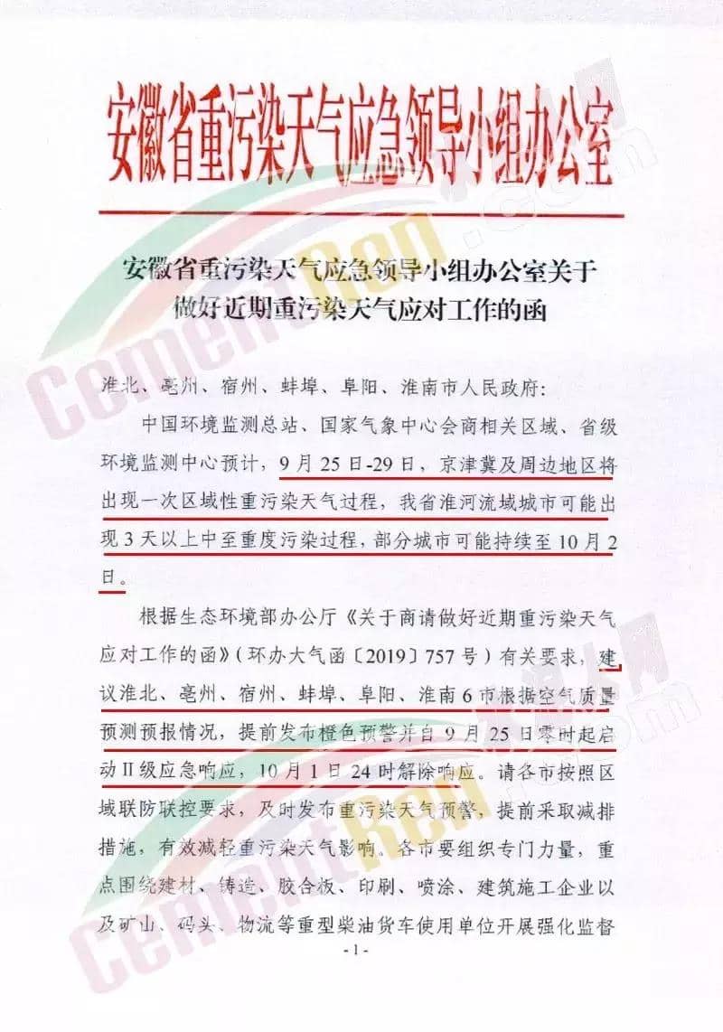 除此之外,安徽省重污染天氣應(yīng)急領(lǐng)導(dǎo)小組辦公室關(guān)于做好近期重污染天氣應(yīng)對(duì)工作的函也明確指出,淮北、亳州、宿州、蚌埠、阜陽、淮南區(qū)域根據(jù)質(zhì)量預(yù)測(cè)預(yù)報(bào)情況,自10月1日24時(shí)起解除II級(jí)應(yīng)急響應(yīng)。