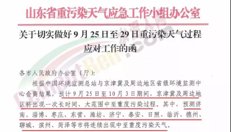 鄭州:自9月24日0時(shí)至10月2日24時(shí)啟動(dòng)重污染天氣II級(jí)應(yīng)急響應(yīng); 焦作:自9月23日12時(shí)起,啟動(dòng)重污染天氣紅色(Ⅰ級(jí))預(yù)警,解除時(shí)間暫定為10月2日24時(shí)。 除山東省菏澤市之外,山東省濟(jì)南、淄博、棗莊、東莞、濰坊、濟(jì)寧、泰安、日照、臨沂、德州、聊城、濱州、菏澤等市也將于10月3日解除重污染天氣預(yù)警,各大工地、企業(yè)也將陸續(xù)復(fù)產(chǎn)。