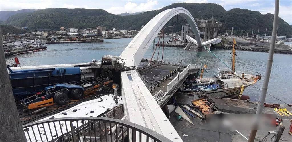 大橋使用20年即坍塌,事發(fā)原因尚待厘清 “中央社”報道稱,2日清晨6時左右,天色逐漸變亮,港灣的水面上布滿油污和船體被支解的木塊、木屑,空氣中彌漫著濃濃的柴油味。而橋梁倒塌后,連帶壓倒電線,引發(fā)2400戶家庭停電;同時也堵塞航道,令南方澳漁港內(nèi)800艘漁船進(jìn)出不得。