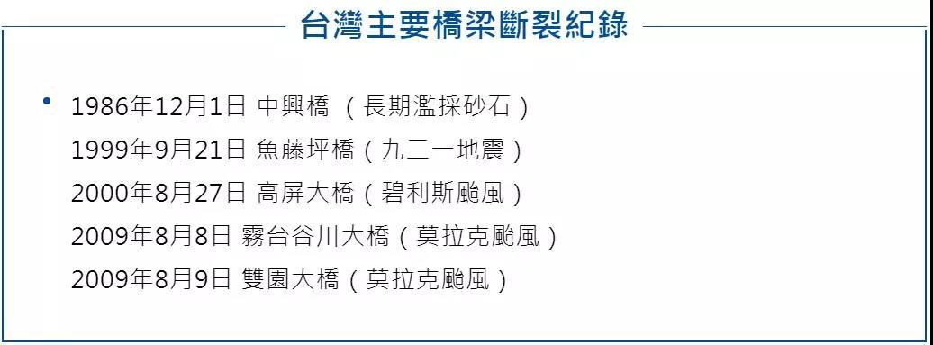 國民黨“立委”:非危險橋梁都斷了,令民眾憂心 臺當(dāng)局“交通部”稱,大橋于1998年底完工驗(yàn)收,至今約21年,目前由臺灣港務(wù)公司保養(yǎng)維護(hù),包括油漆、欄桿、伸縮縫、路面等。