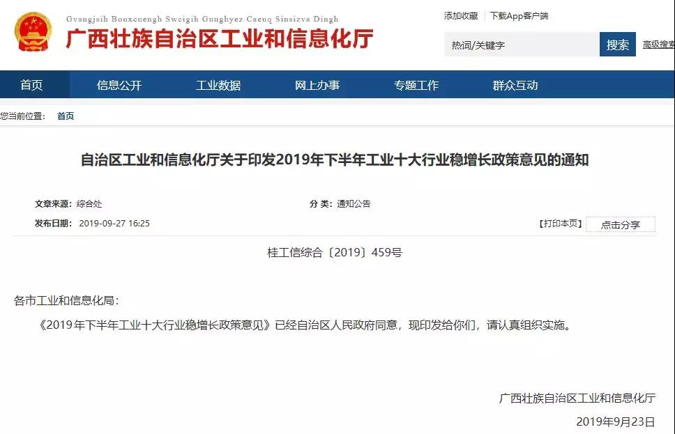 根據(jù)自治區(qū)黨委、政府關(guān)于穩(wěn)增長(zhǎng)的決策部署,為全力推動(dòng)2019年下半年我區(qū)鋼鐵、有色、水泥、石油化工、桂酒、糧油加工、火電、木材加工、電子信息、修造船等十大行業(yè)穩(wěn)定增長(zhǎng),經(jīng)自治區(qū)人民政府同意,特出臺(tái)以下政策意見(jiàn)。