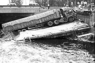 2012年哈爾濱的:裝滿石灰,三打一,估計400噸,干翻一座新橋(司機(jī)們要不要這么笨,扎堆兒送死...)
