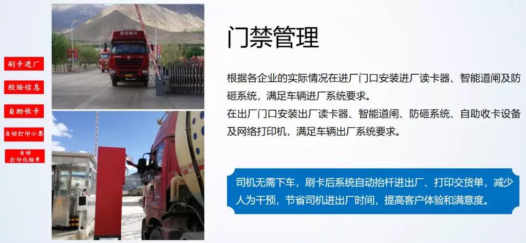 正是基于對(duì)傳統(tǒng)水泥發(fā)運(yùn)環(huán)節(jié)存在的一系列問(wèn)題有了充分認(rèn)識(shí),河南志信自主研發(fā)的智能物流一卡通系統(tǒng)主要針對(duì)門(mén)禁、地磅、裝車、發(fā)運(yùn)等環(huán)節(jié)進(jìn)行升級(jí)改造,通過(guò)信息化管理實(shí)現(xiàn)對(duì)整個(gè)發(fā)運(yùn)流程的綜合管控和實(shí)時(shí)監(jiān)控,實(shí)現(xiàn)了銷售管理智能化、一卡通無(wú)人值守稱重和定值裝車等。
