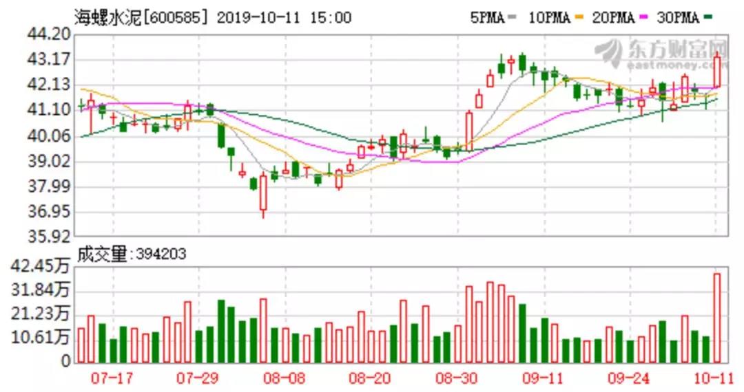 10月11日,海螺水泥盤中最高價(jià)43.46元,股價(jià)創(chuàng)歷史新高。截至收盤,海螺水泥最新價(jià)為43.26元,上漲3.79%,全日成交金額達(dá)到16.93億元,換手率0.99%。根據(jù)最新收盤價(jià)進(jìn)行計(jì)算,海螺水泥總市值為2292.48億元。