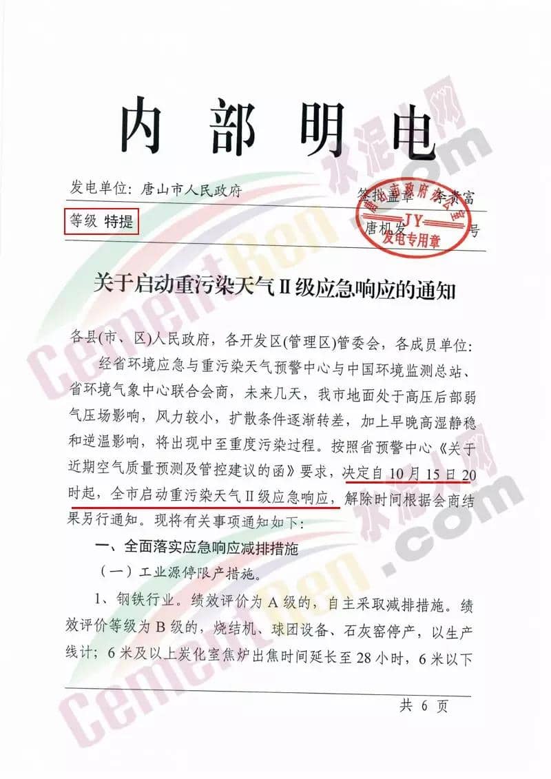 水泥人網(wǎng)消息:昨日(15日)唐山市人民政府再發(fā)特提文件《關于啟動重污染天氣II級應急響應的通知》稱,自10月15日20時起,全市啟動重污染天氣II級應急響應,解除時間根據(jù)會商結果另行通知。