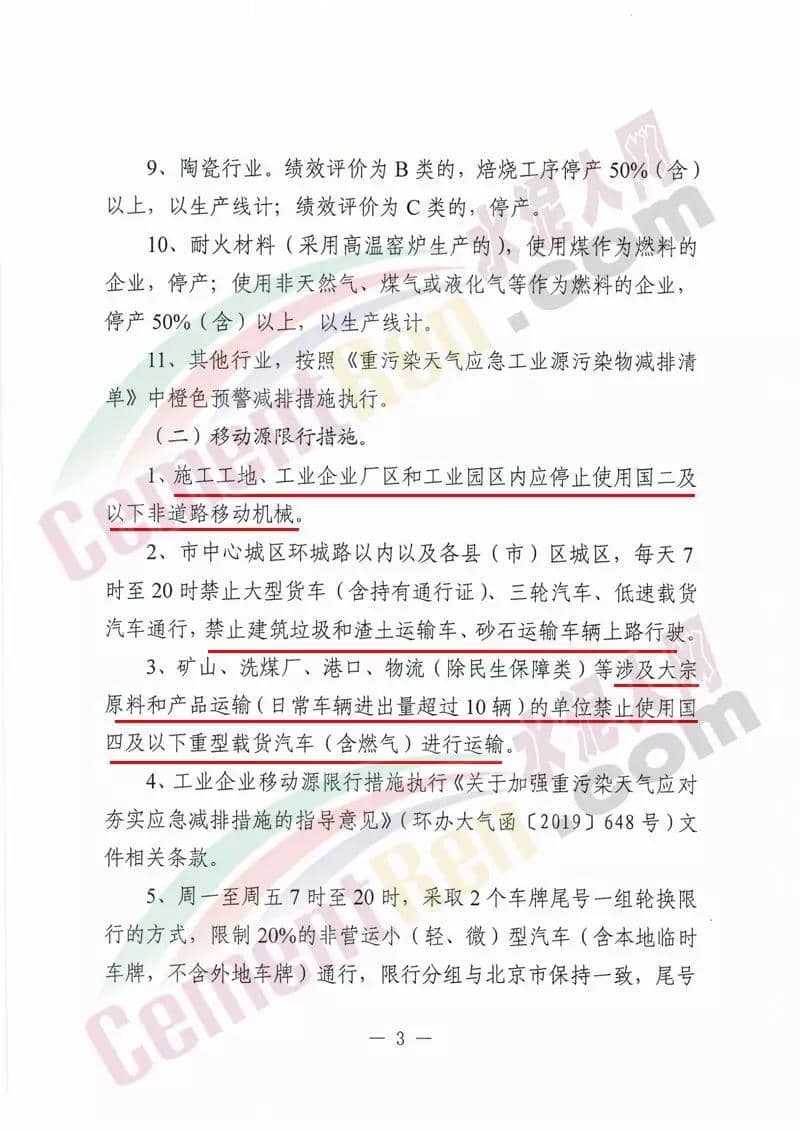 一、全面落實應急響應減排措施工業(yè)源停限產(chǎn)措施一樣面要求水泥行業(yè)(特種水泥除外),泥制品、粉磨站停產(chǎn);水泥熟料生產(chǎn)線停產(chǎn);協(xié)同處置城市生活垃圾或危險廢物的企業(yè),日處理生活垃圾與污泥總量低于400噸(含)、處理有毒有害廢棄物總量低于熟料產(chǎn)能4%(含)的生產(chǎn)線,停產(chǎn)。