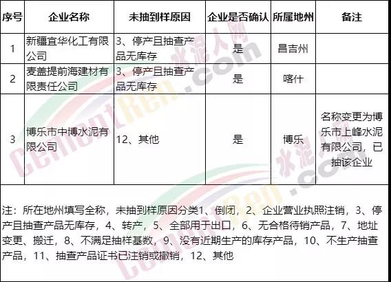 2019年自治區(qū)水泥產(chǎn)品質(zhì)量監(jiān)督抽查未抽樣企業(yè)名單不僅新疆地區(qū),近一年,已經(jīng)多個區(qū)域市場監(jiān)督管理局通報抽檢不合格品名單詳情如下: