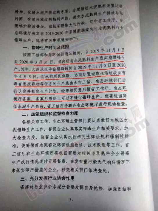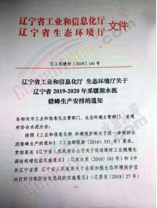 水泥人網(wǎng)消息:日前,遼寧省工業(yè)和信息化廳、生態(tài)環(huán)境廳聯(lián)合下發(fā)關于《遼寧省2019年-2020年采暖期水泥錯峰生產(chǎn)安排的通知(遼工信建材【2019】141號)》文件要求,2019年11月1日至2020年3月31日,省內(nèi)所有水泥熟料生產(chǎn)線實施錯峰生產(chǎn)。其中大連地區(qū)停窯錯峰時間自11月5日至2020年4月5日。