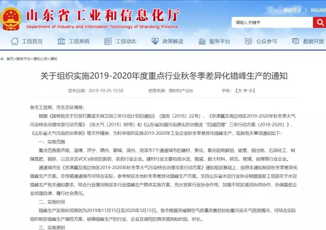 請各市于10月底前將本市錯峰生產(chǎn)方案分別報省工信廳、省生態(tài)環(huán)境廳。